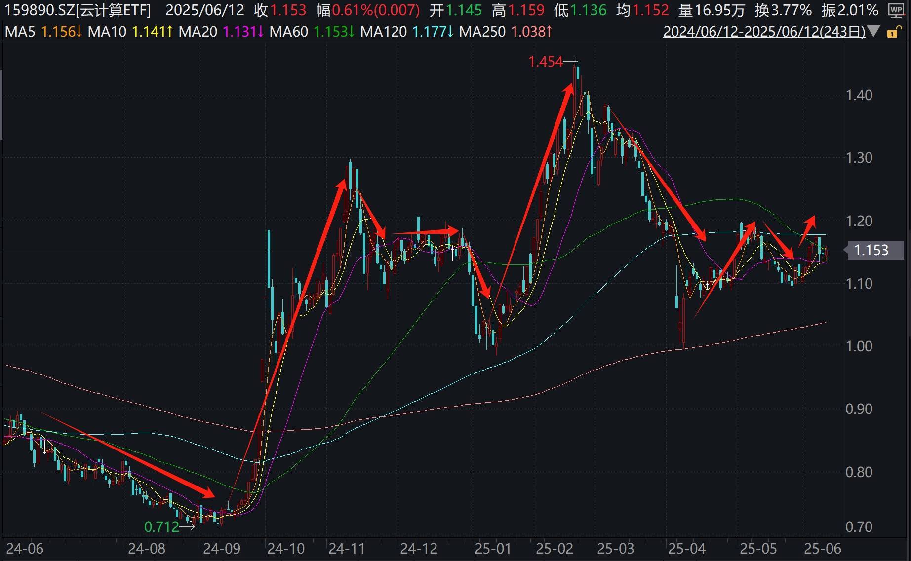 从$云计算ETF(SZ159890)$去年924以来的走势可以发现,每经历一段主升浪行情,板块会在两端小幅回调中蓄力,而后再次向上突破高点。目前ETF从2月高点以来已经经历两波回调,后续或许有概率打开空间演绎上行。
